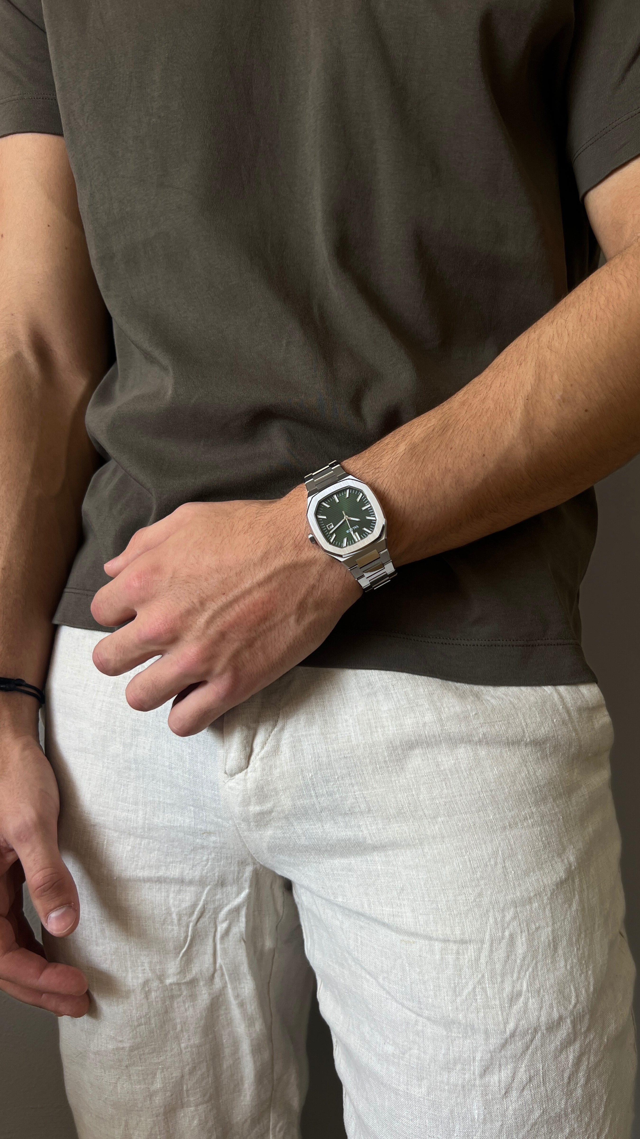 Our automatic movements features a 41-hour power reserve and is powered by wrist motion through a self-winding rotor. It can also be manually wound via the crown and requires no battery. This blend of convenience and precision ensures your watch stays running with regular wear or by manual winding when needed.